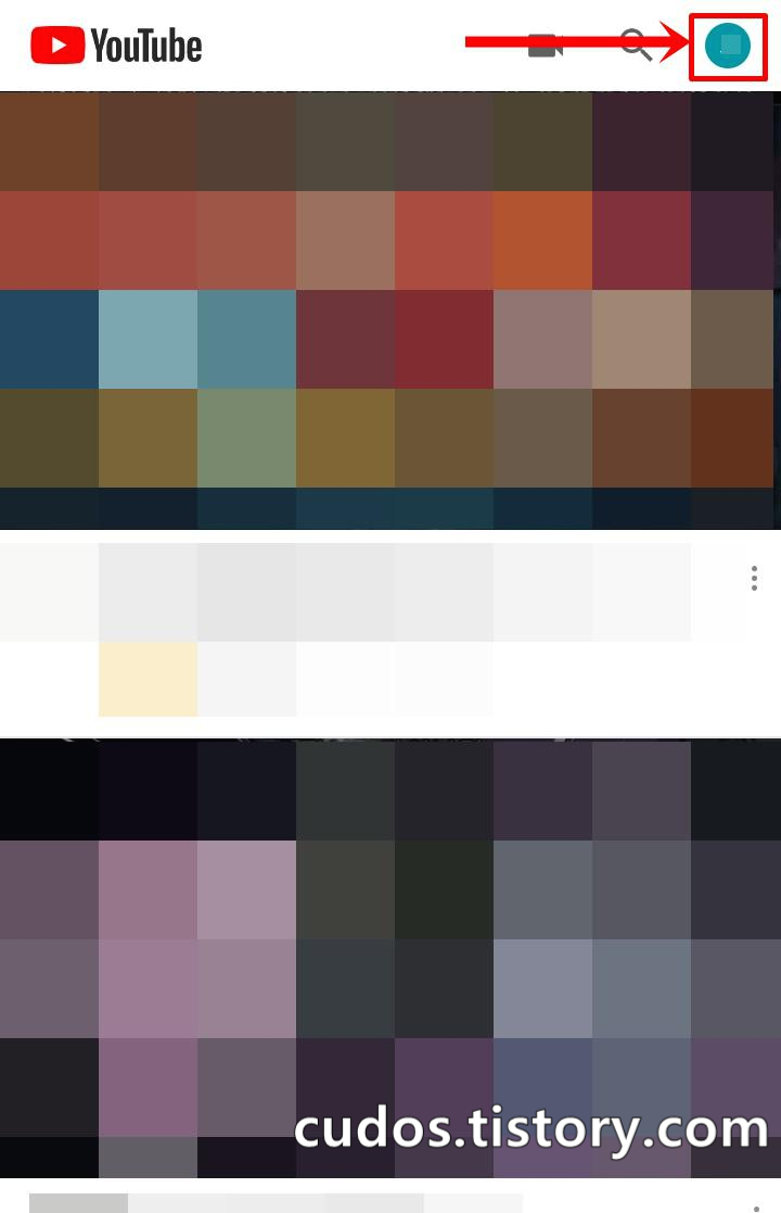 먼저 유튜브 모바일앱을 실행시켜주세요. 유튜브 실행이 완료되셨다면 우측 상단에 위치하고 있는