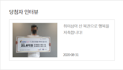 동행복권 홈페이지 중간에 보시면 이처럼 로또 당첨자분들의 인터뷰를 볼 수 있습니다.