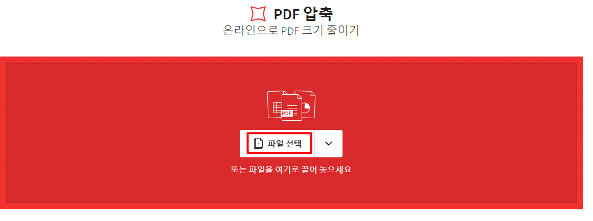 해당 화면에서 파일 선택 후 PDF 용량 줄이기를 할 PDF 파일을 선택해주세요. 파일을 드래그 해서 넣어주셔도 됩니다.