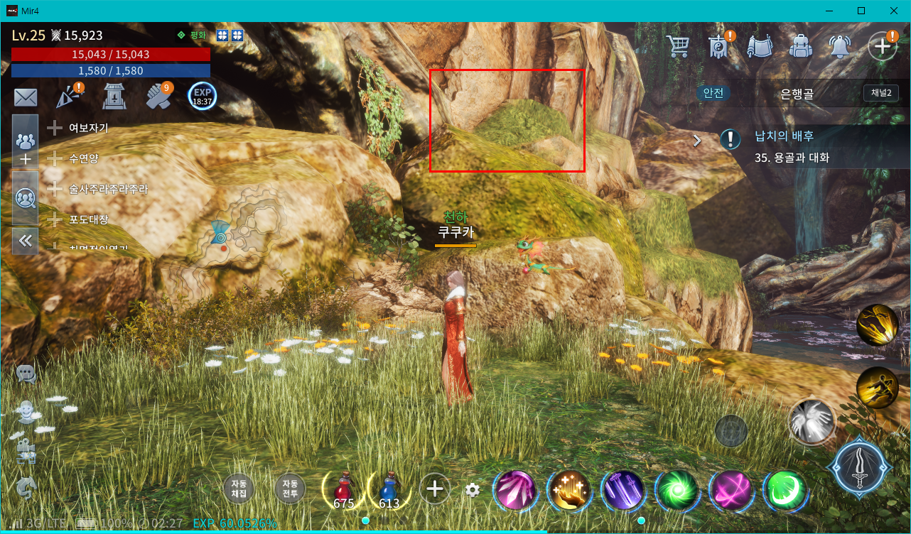 이미지에 표시된 위치를 경공을 통해 들어가신 후 폭포수로 들어가주시면 됩니다.