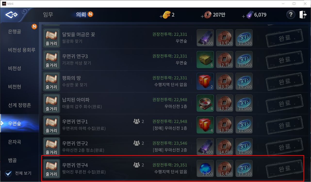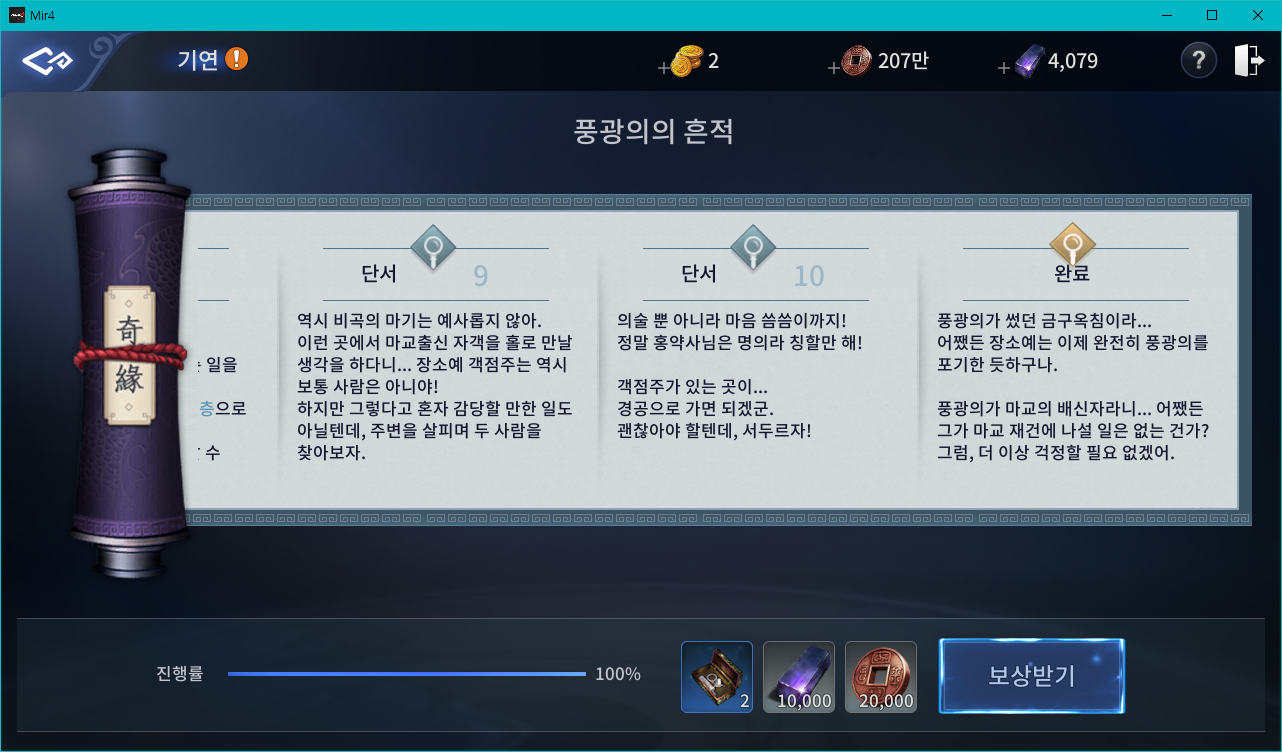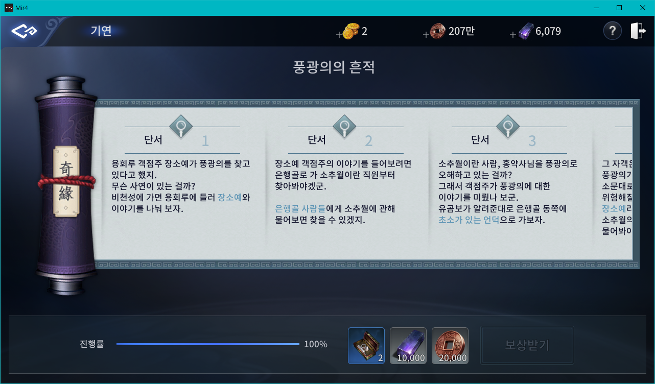 미르4 백화금침 풍광의의 흔적 선행 의뢰퀘스트