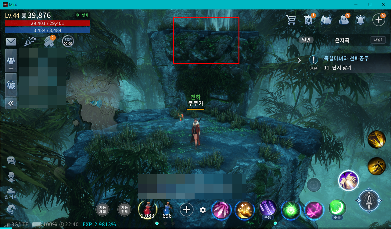 미르4 기연퀘스트 백화금침 풍광의의 흔적