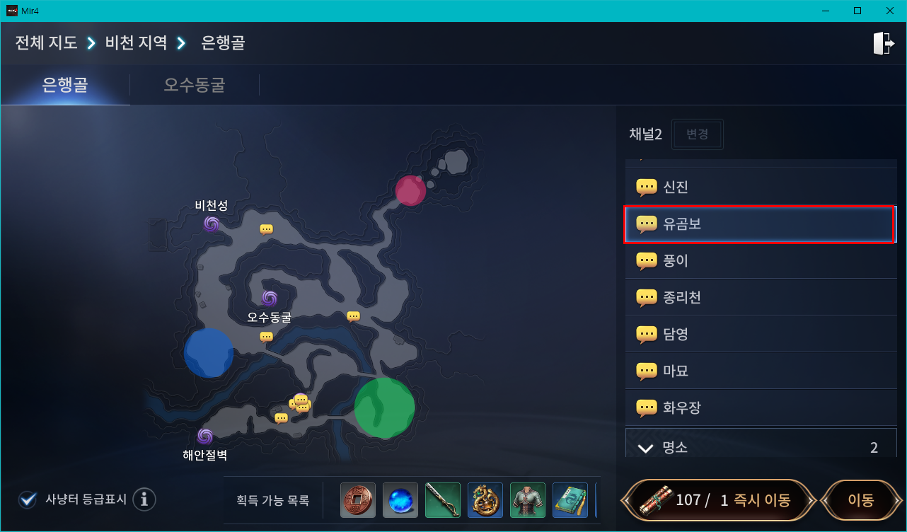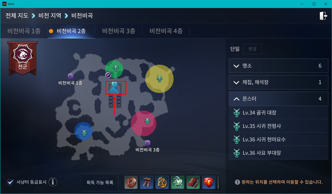 ※ 비천비곡 2층 흑철 채광지로 텔레포트 이동 후 계단으로 내려갔다가 다시 올라가시면 편합니다.