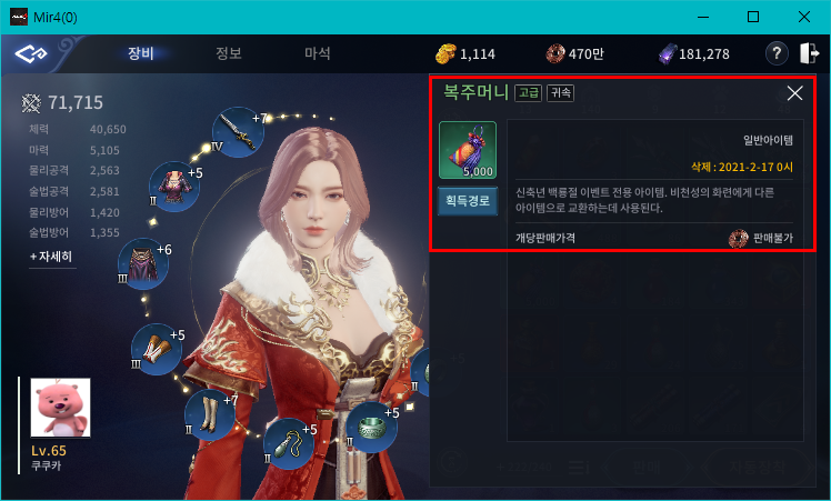 저는 일단 그동안 복주머니를 모아 봤습니다. 현재 5,000개의 복주머니가 있는데 이것을 교환해보도록 하겠습니다.