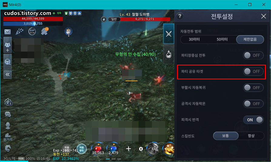 퀵 전투설정에 파티 공유 타켓 온/오프 시스템이 추가되었습니다. 파티 사냥을 할 때 자주 이용하게 될 것 같습니다.