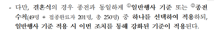 또는 300명을 초과하는 행사의 경우 원칙적으로 금지되지만 종전처럼 관계 부처 사전 승인하에 예외적으로 개최 가능하며, 향후 약 2주간은 엄중한 방역상황을 감안하여 필수 행사 외에는 불승인한다고 합니다.