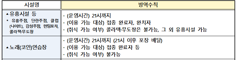 1그룹 : 유흥시설, 콜라텍·무도장 등 약 4만개소 (운영시간 21시까지로 제한)