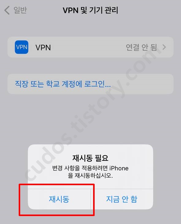 10. 아이폰 구성 프로파일 삭제 후 재시동