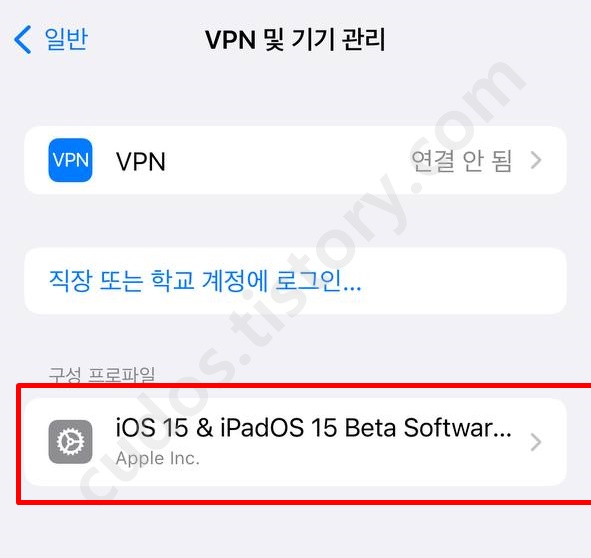 5. 아이폰VPN 및 기기관리 메뉴 진입