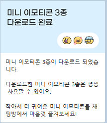 이렇게 평생 무료로 증정하는 카카오톡 미니 이모티콘은 3가지입니다
